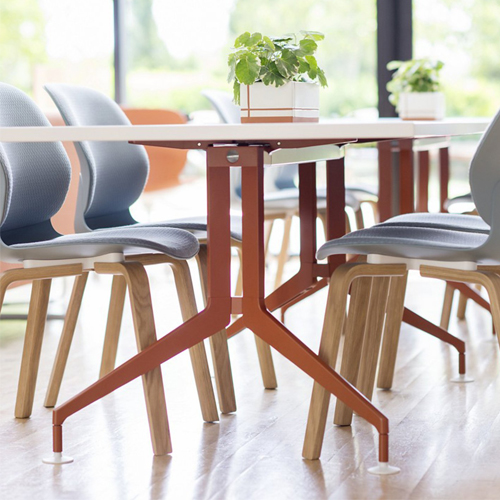 Store. Flip up the pneumatic Y-Leg table with its ergonomic finger pul, then nest to save space. Finished on both sides, Planes tables can be stored in plain view.