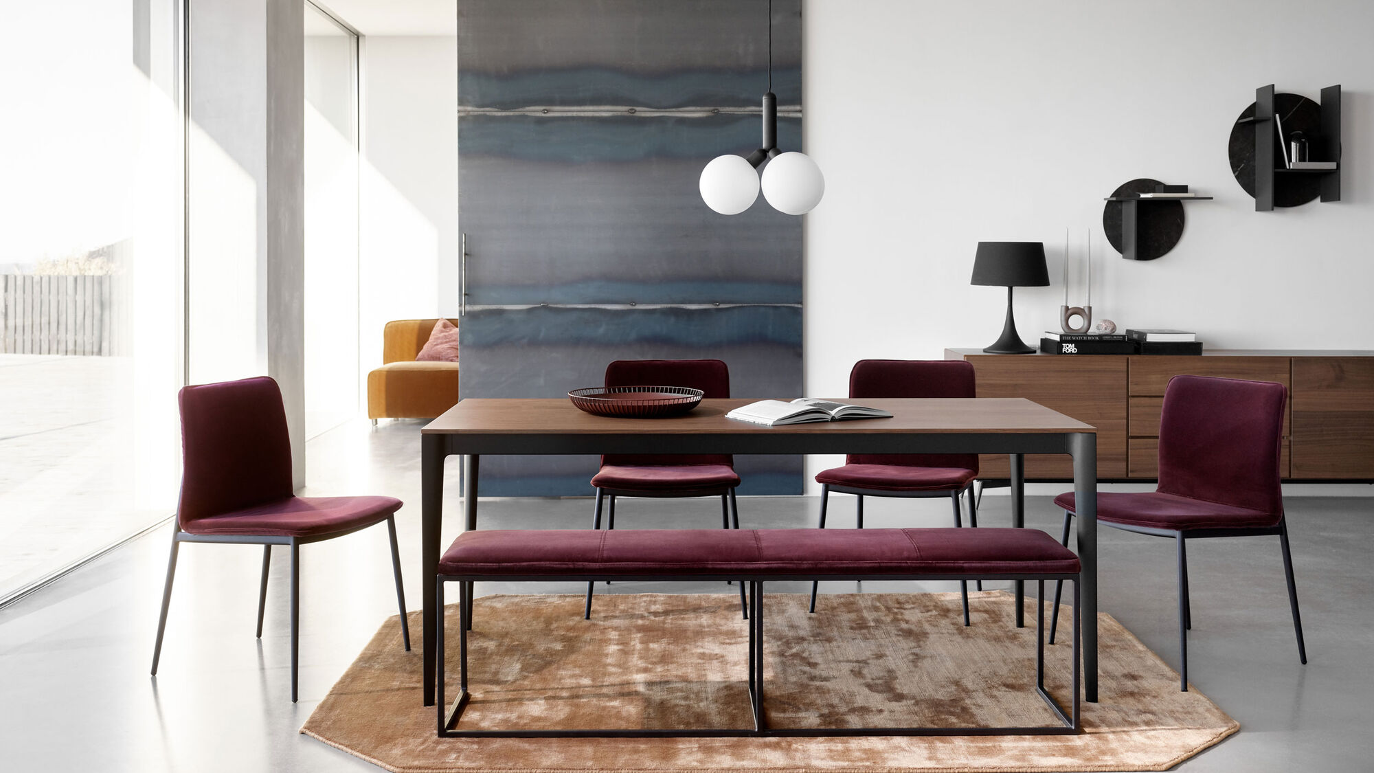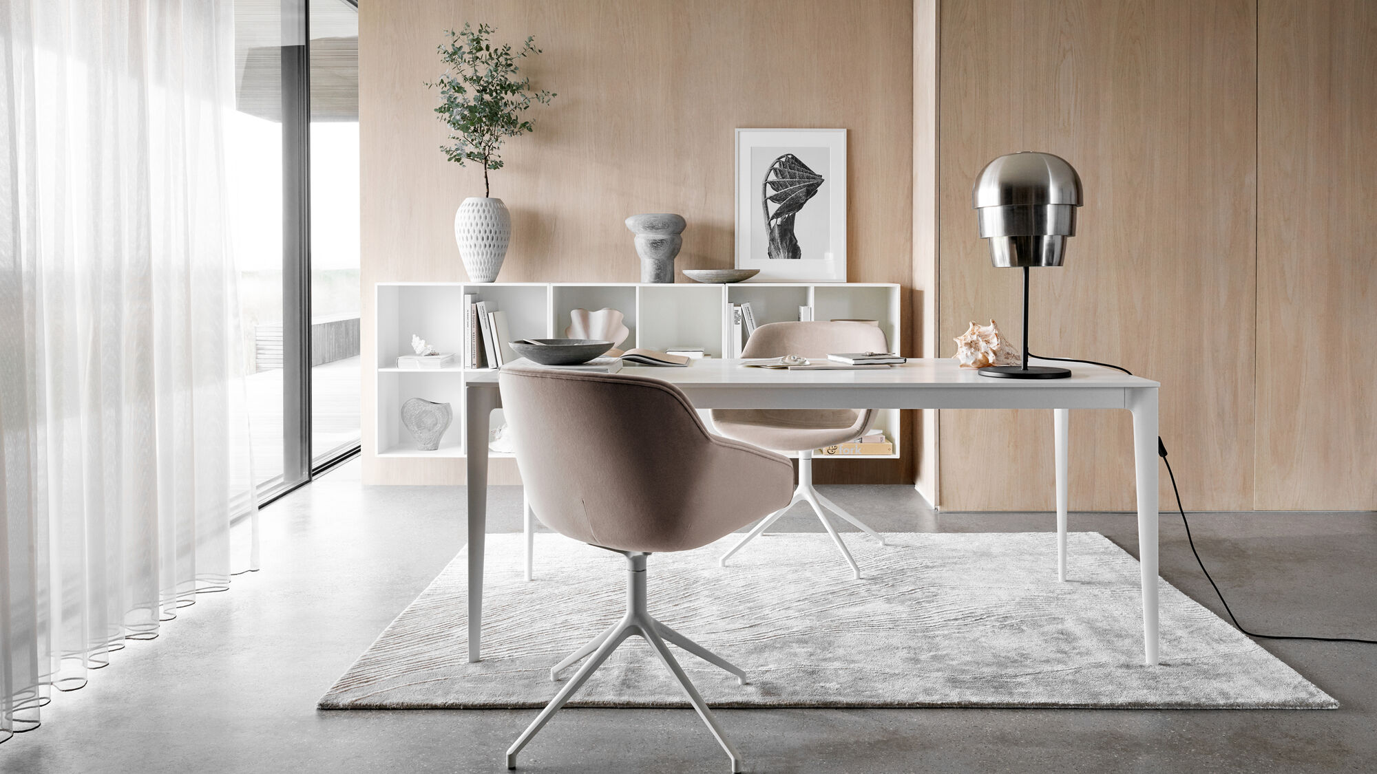 The contour of the legs bears references to wind mill wings. The table is elegantly constructed as the droplet shaped legs transform into aprons and table in one continuous movement. This creates an organic design with outstanding stability.