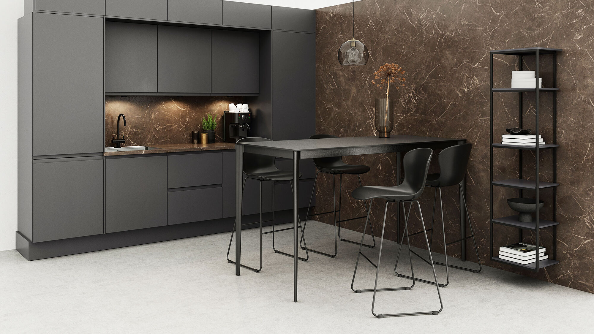 The contour of the legs bears references to wind mill wings. The table is elegantly constructed as the droplet shaped legs transform into aprons and table in one continuous movement. This creates an organic design with outstanding stability.